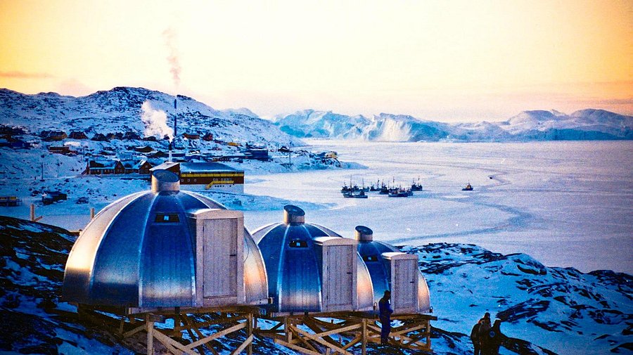 Hotel Arctic is the world’s northernmost 4-star hotel and is located along the edge of the Ilulissat Icefjord, a UNESCO World Heritage Site. The hotel features modern rooms, suites, and signature aluminum igloo cabins offering direct views of icebergs and the Arctic horizon.